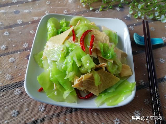 【包菜炒油豆皮】材料:白菜1棵、油豆皮(干)150克、油盐适量、葱1段、姜1片、大蒜2瓣、老干妈1汤匙、米醋几滴、