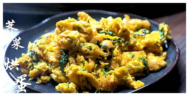 在蒸米糕和紫薯的间隙,李子柒去菜园子摘了一些荠菜,清洗干净,再切一些葱花,配上之前和米糊剩下的蛋黄,炒了一份荠菜拱蛋。颜色金黄漂亮,中间夹杂着荠菜的鲜绿色,堪称是色香味俱全。