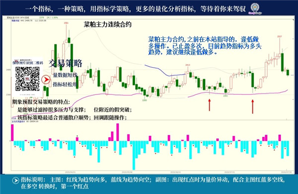 期象预报交易策略的特点是能够过滤掉很多压力与支撑位附近的假突破。该指标策略最适合普通散户顺势回调跟随操作。