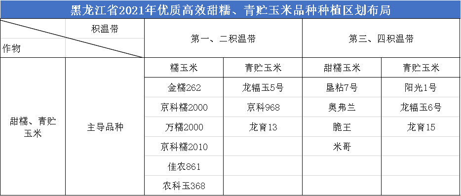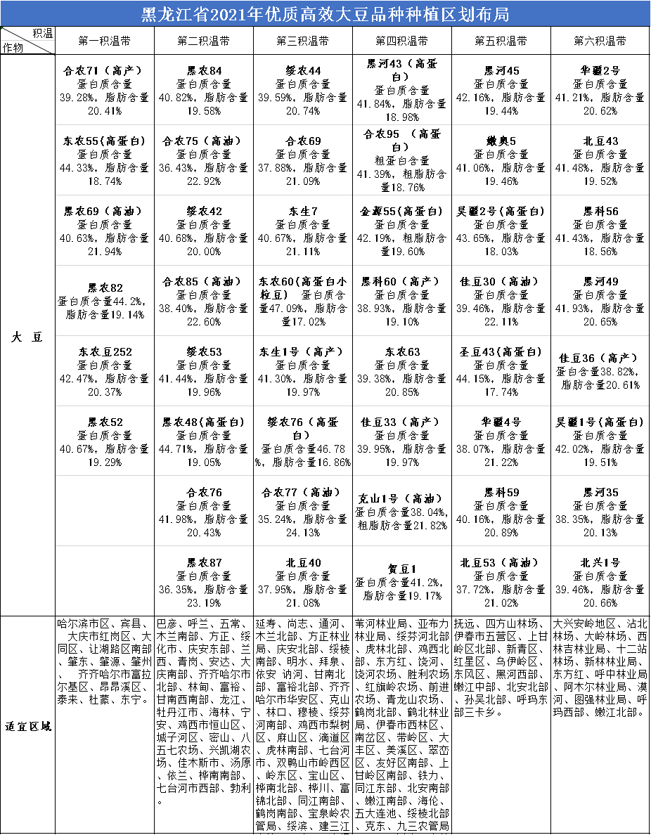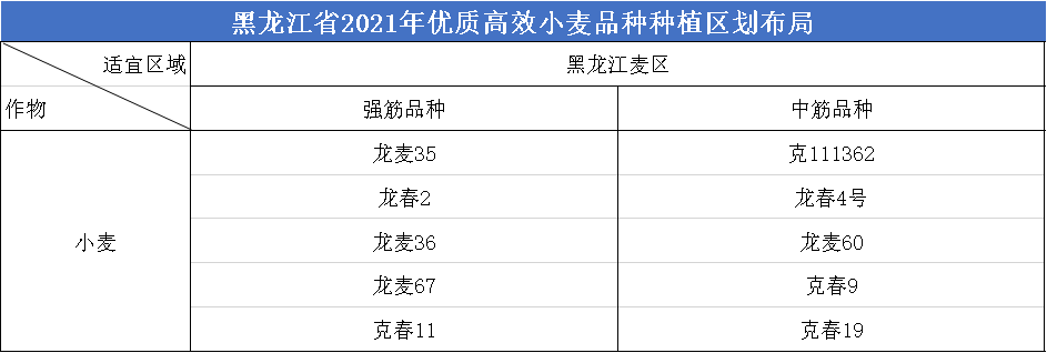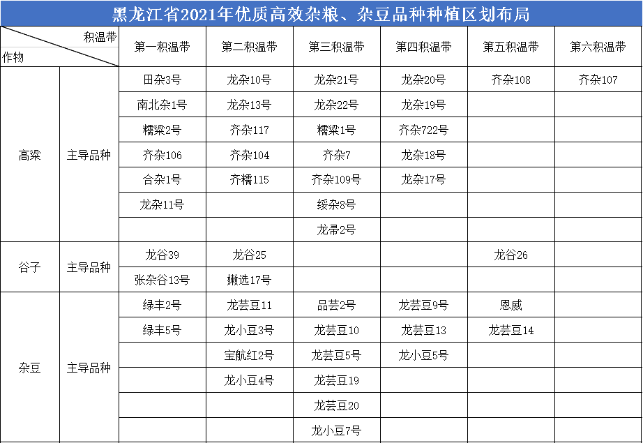黑龙江省2021年农作物优质高效品种种植区划布局
