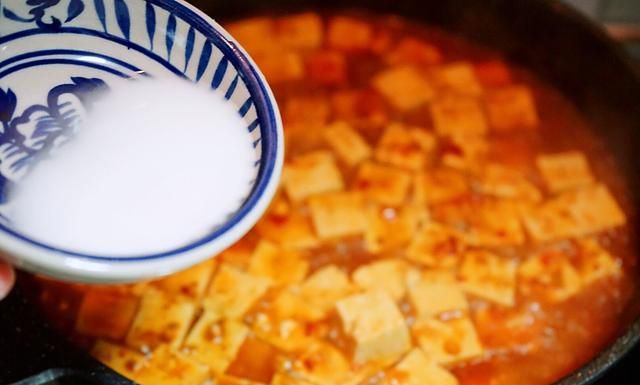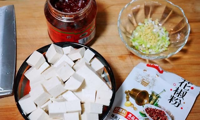 【所需食材】:大豆腐一块(卤水豆腐,北豆腐),葱蒜末适量,郫县豆瓣酱一勺,花椒粉一勺,食用油适量,水淀粉半碗,生抽酱油一勺,盐适量