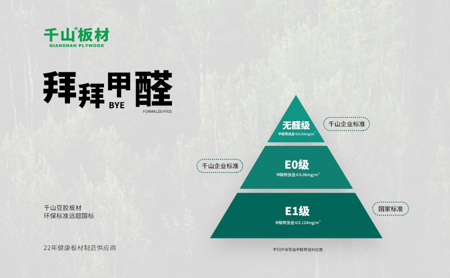 千山无醛级大豆胶板材!这是作为板材十大品牌的千山板材交出的作业,也在全行业都在苦苦探索的蛮荒时期,为行业指引了一条出路。千山无醛级大豆胶板材,关键之处,就是使用了天然的、可再生、0甲醛添加的大豆植物胶,从根本源头解决了甲醛污染。
